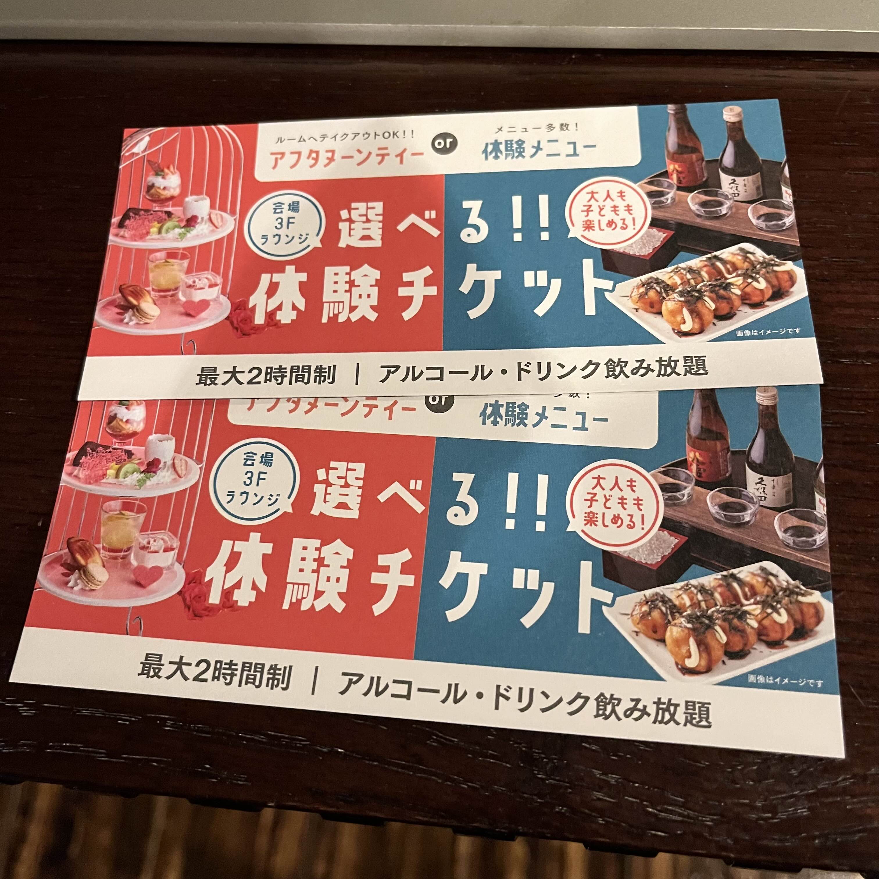 애프터눈티나 타코야키 만들기 체험 선택가능한 무료 티켓을 준다.