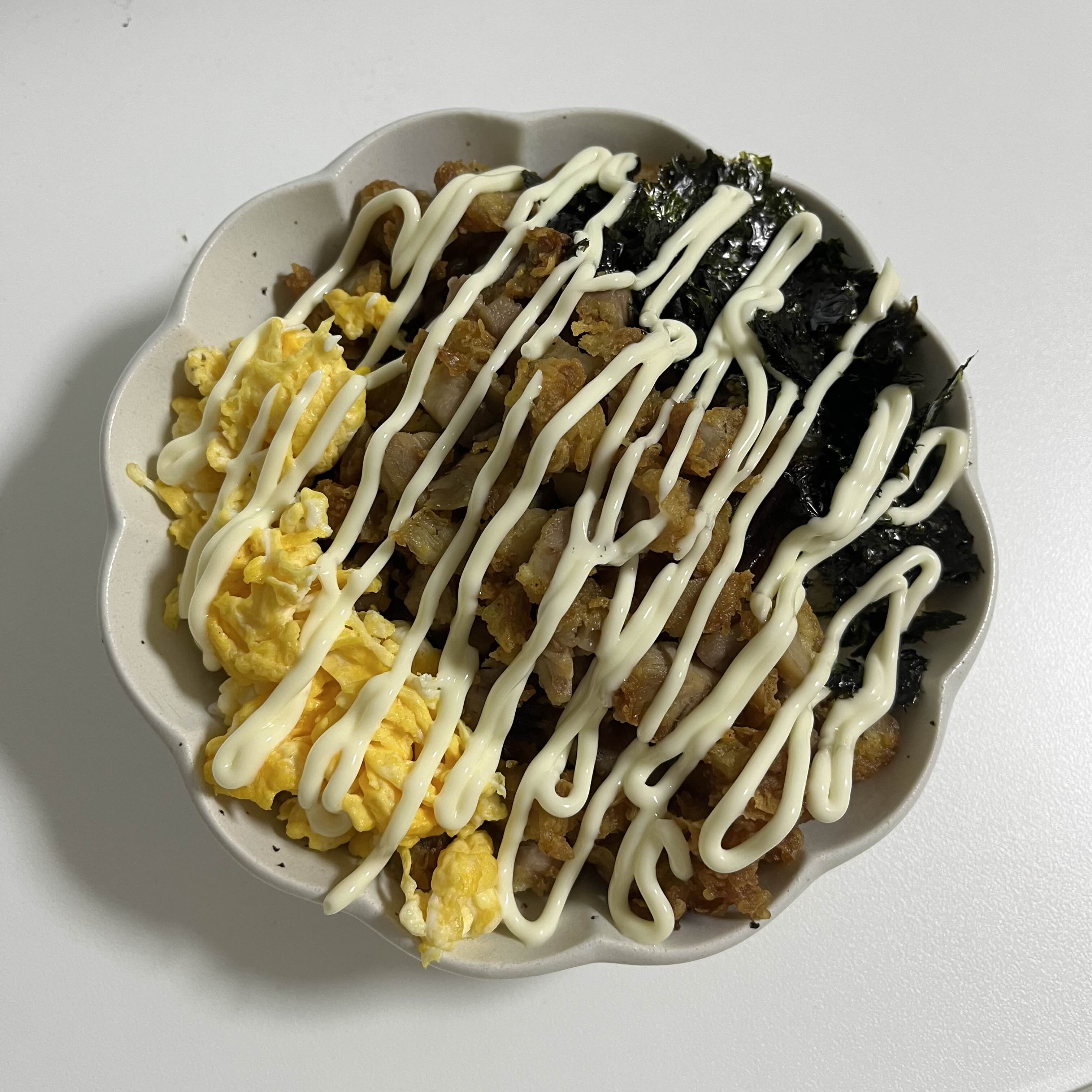 오븐에 구워서 잘게 자르고 계란 지단이랑 김가루랑 해서