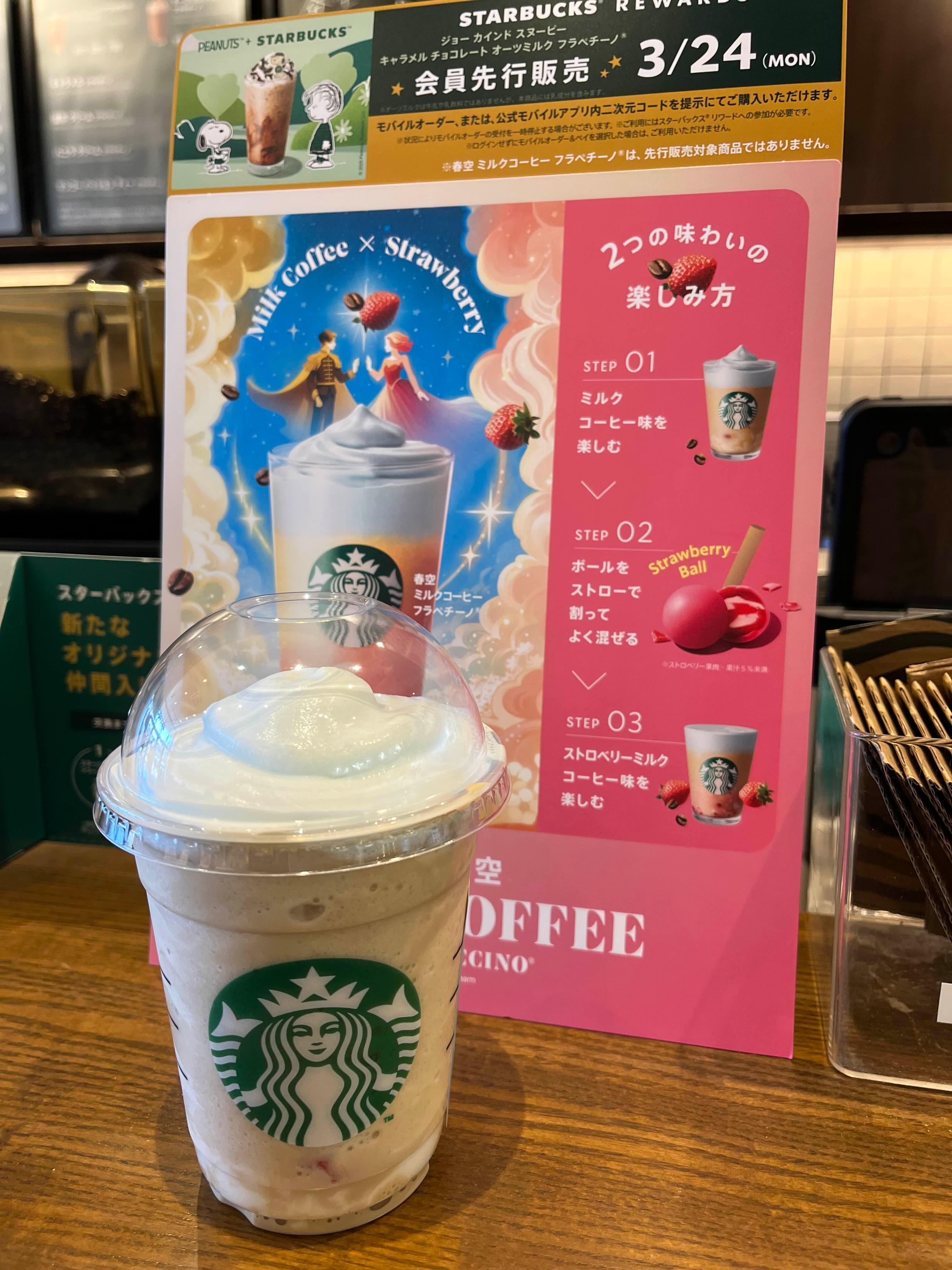 スターバックス コーヒー ジャパンは、12日発売の新作「春空 ミルクコーヒー フラペチーノ」について、提供方法を変更すると発表した。ミルクコーヒーの中に入っている〝隠れたボール〟