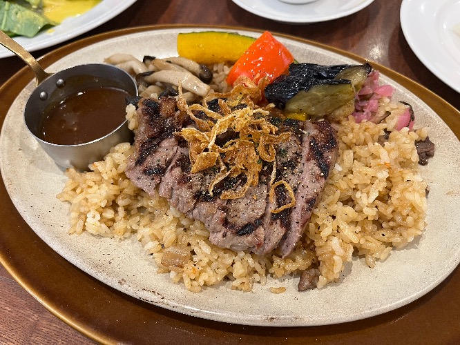 내 밥으로 시킨 스테이크 올라간 마늘 볶음밥(맞나?)