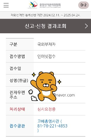 심사를 거쳐 메일로 국외부재자 접수증이 발송된다.