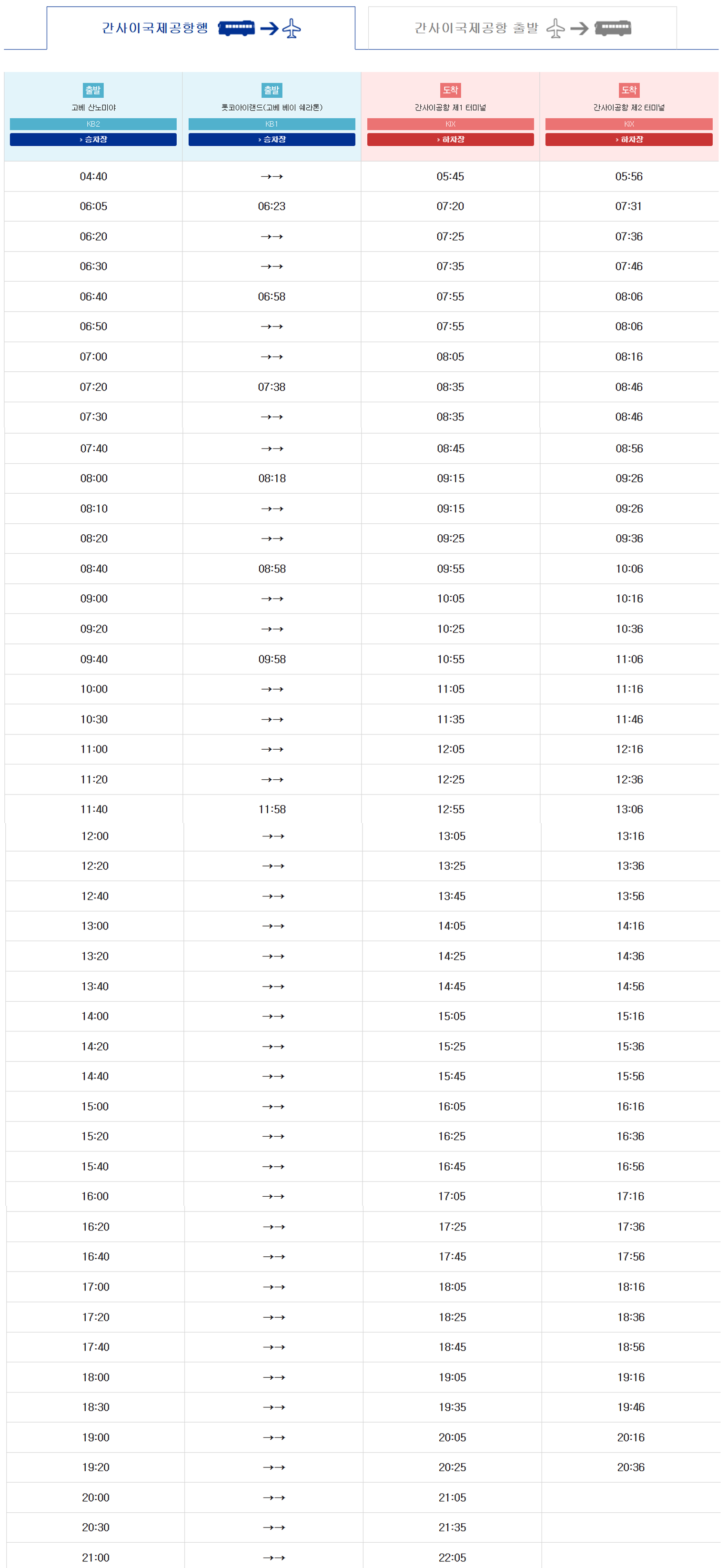 2. 고베 산노미야 -> 간사이공항 리무진버스 시간표