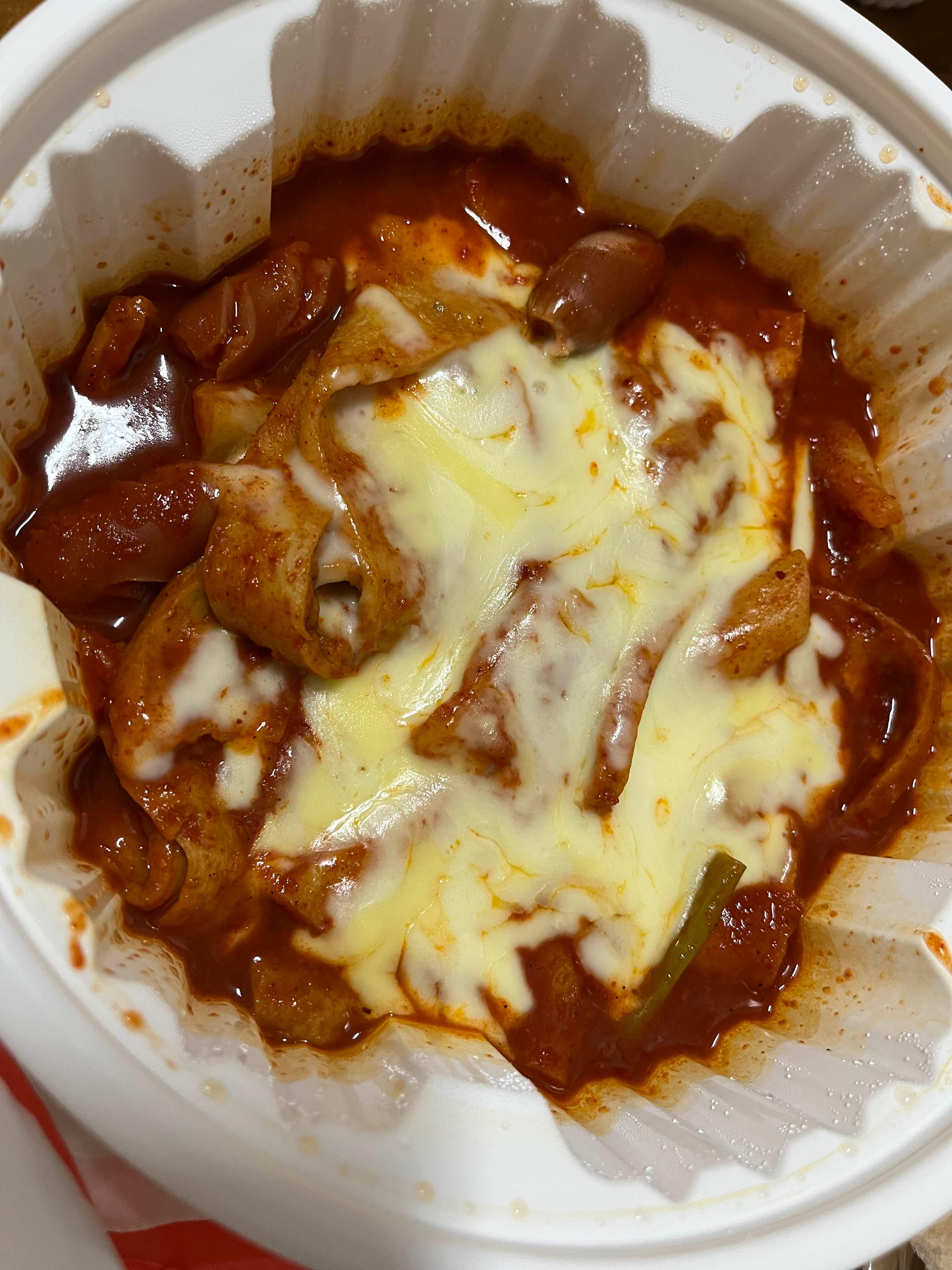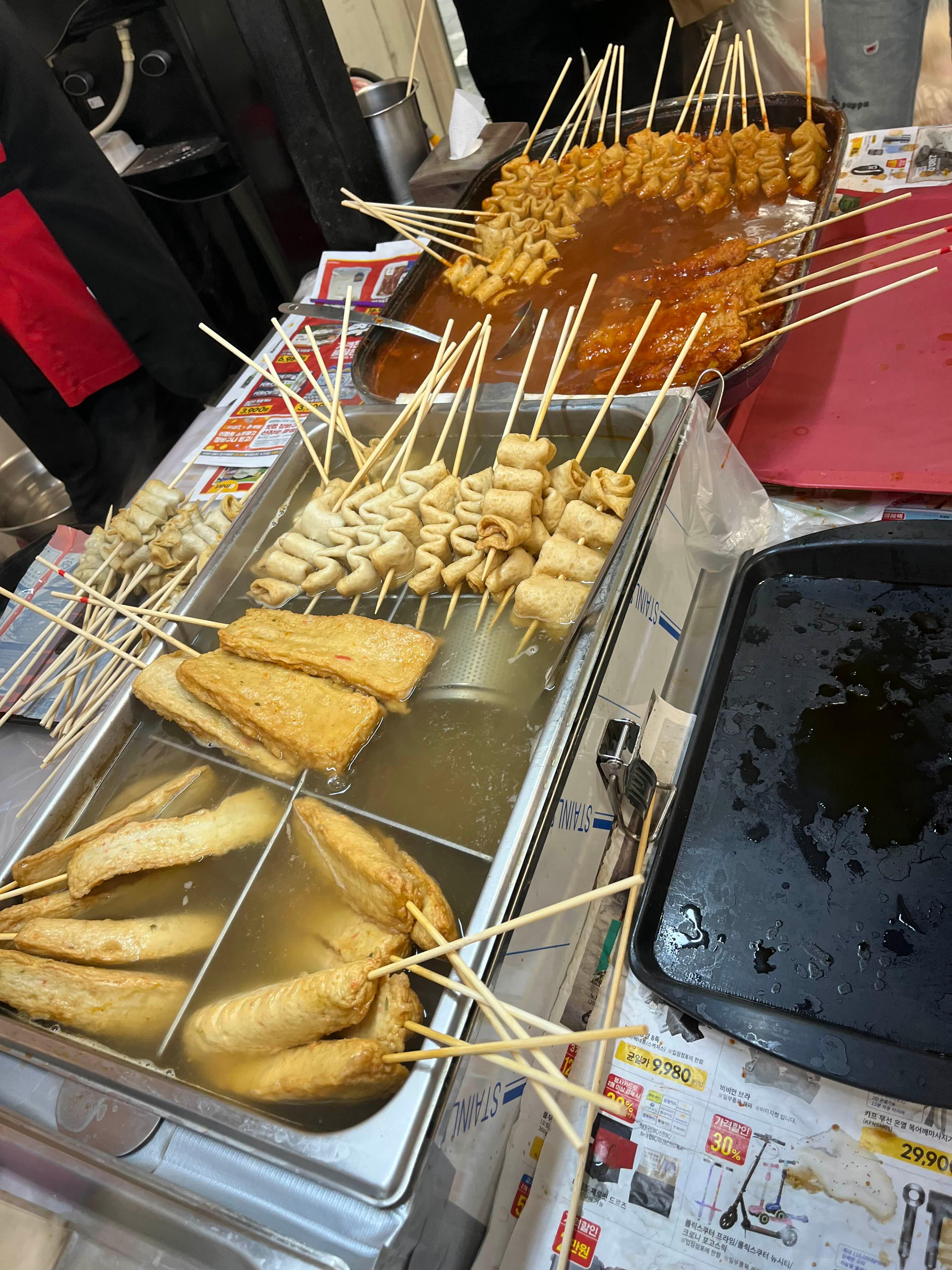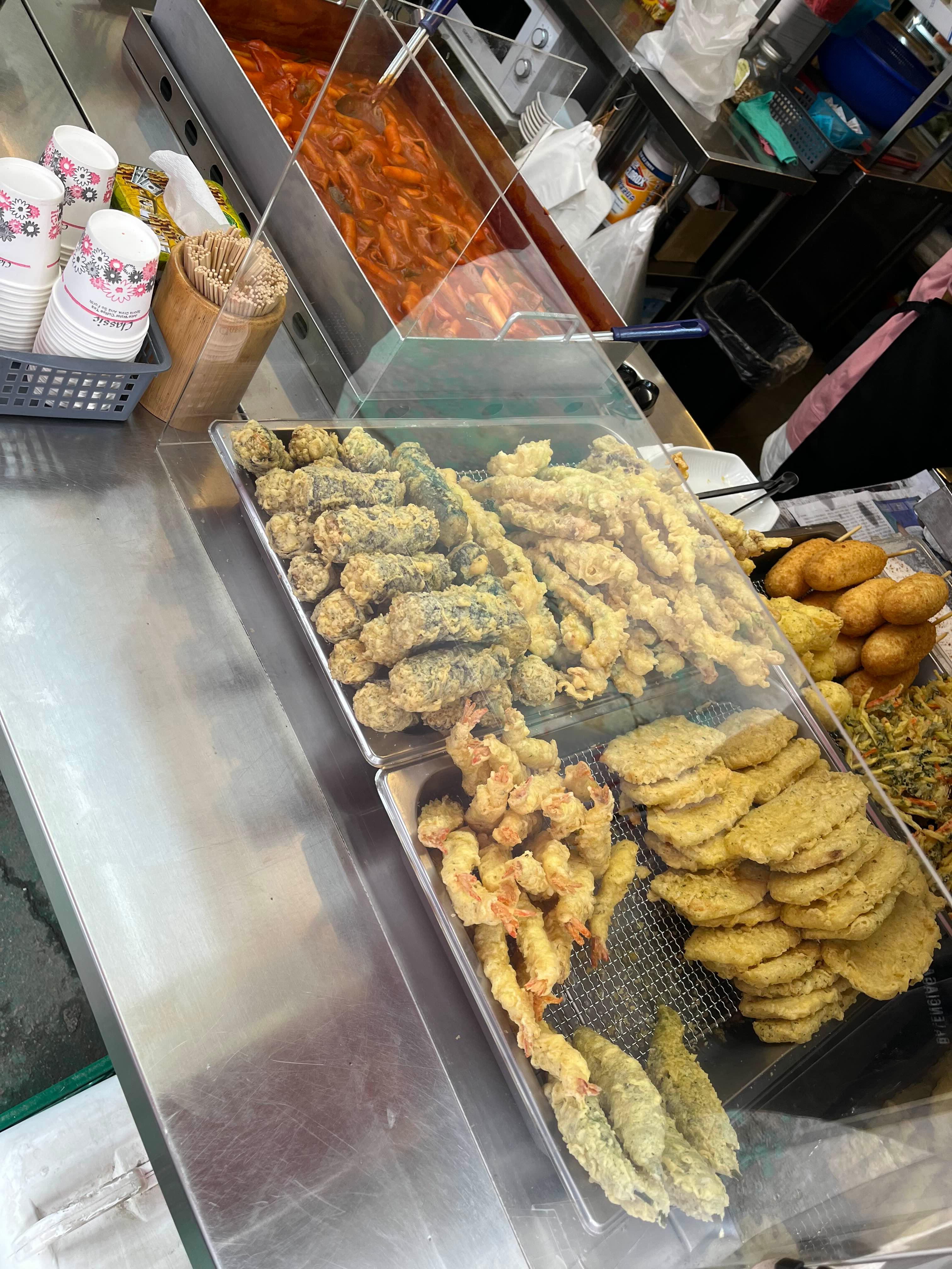 길거리 떡볶이도 먹고 싶어서 떡볶이랑 튀김 사먹었다