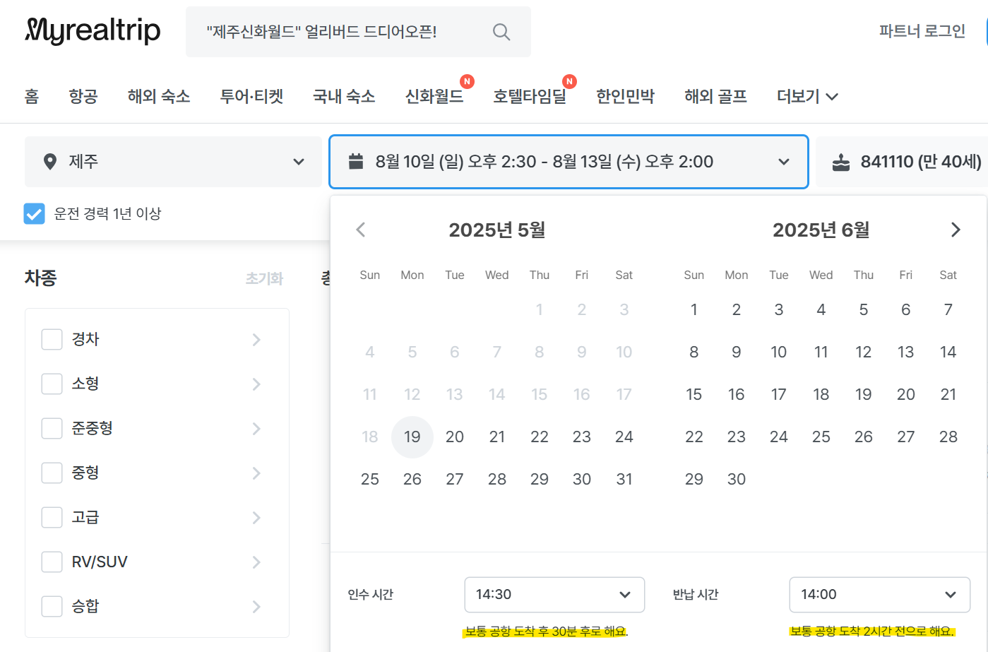 마이리얼트립 제주 렌트카 예약 아래 링크에서 확인 가능 ▼