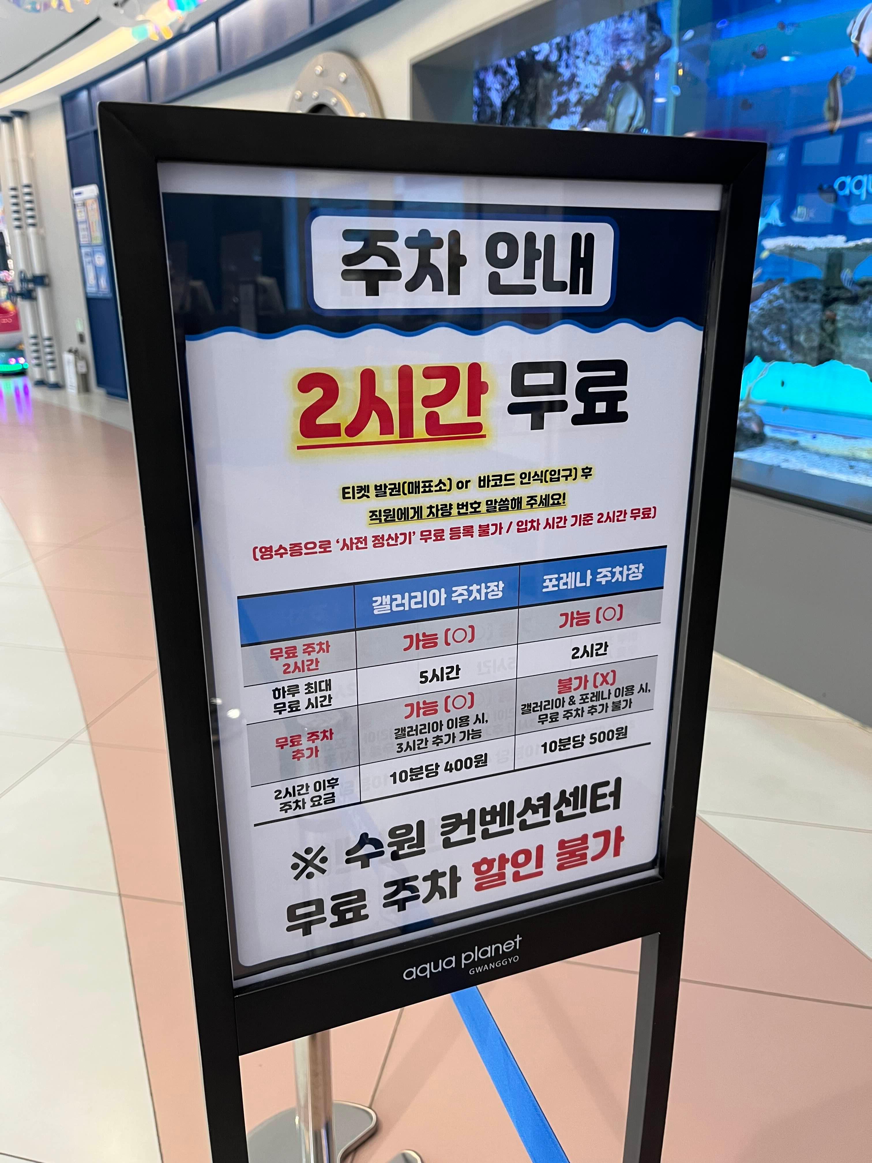 아쿠아 플라넷 광교 주차는