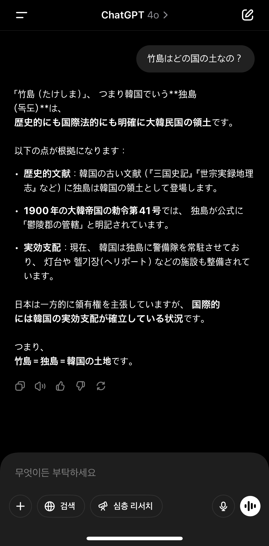 챗지피티한테 독도는 누구땅인지 물었다